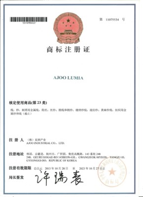 the company “AJOO Industrial Co.,Ltd” is mainly focusing on manufacturing premium metallic, and fancy yarn under “ISO9001” and “OEKO-tex”, the strict quality managing system. Launching the brand “LUMIA,” the company runs its own factory in Korea (Yang-ju) also in China (Yantai), exporting high- quality product to Europe and America where are the advanced